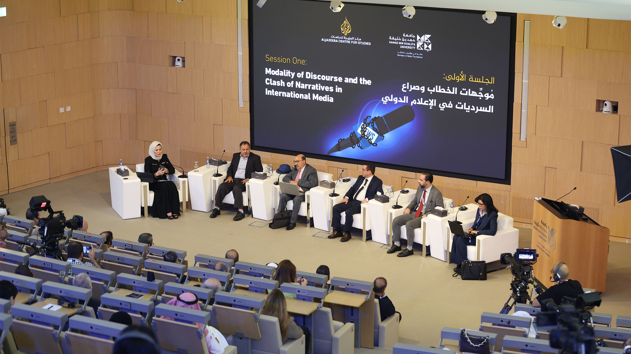 “International Media and the War on Gaza: Modalities of Discourse and the Clash of Narratives” concluded after two days of intensive discussions on 29–30 November 2025. Organised by Al Jazeera Centre for Studies and the College of Humanities and Social Sciences at Hamad Bin Khalifa University, the conference brought together a select group of researchers, experts and academics in the fields of media, communication, social sciences and international law. Over the course of its sessions, the conference offered an in-depth reading of the major shifts that have reshaped media narratives during the war on Gaza and shed light on the mechanisms of media and digital genocide and their relationship to power and knowledge in today’s international order.