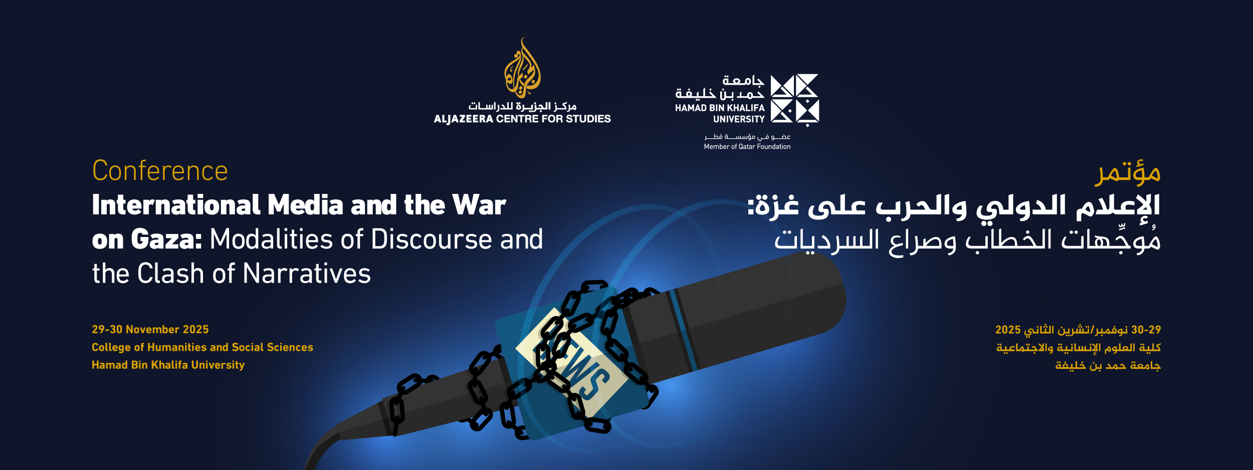 الجزيرة للدراسات وجامعة حمد بن خليفة يبحثان في مؤتمر علمي مُوجِّهات الخطاب وصراع السرديات في تغطية الإعلام الدولي للحرب على غزة